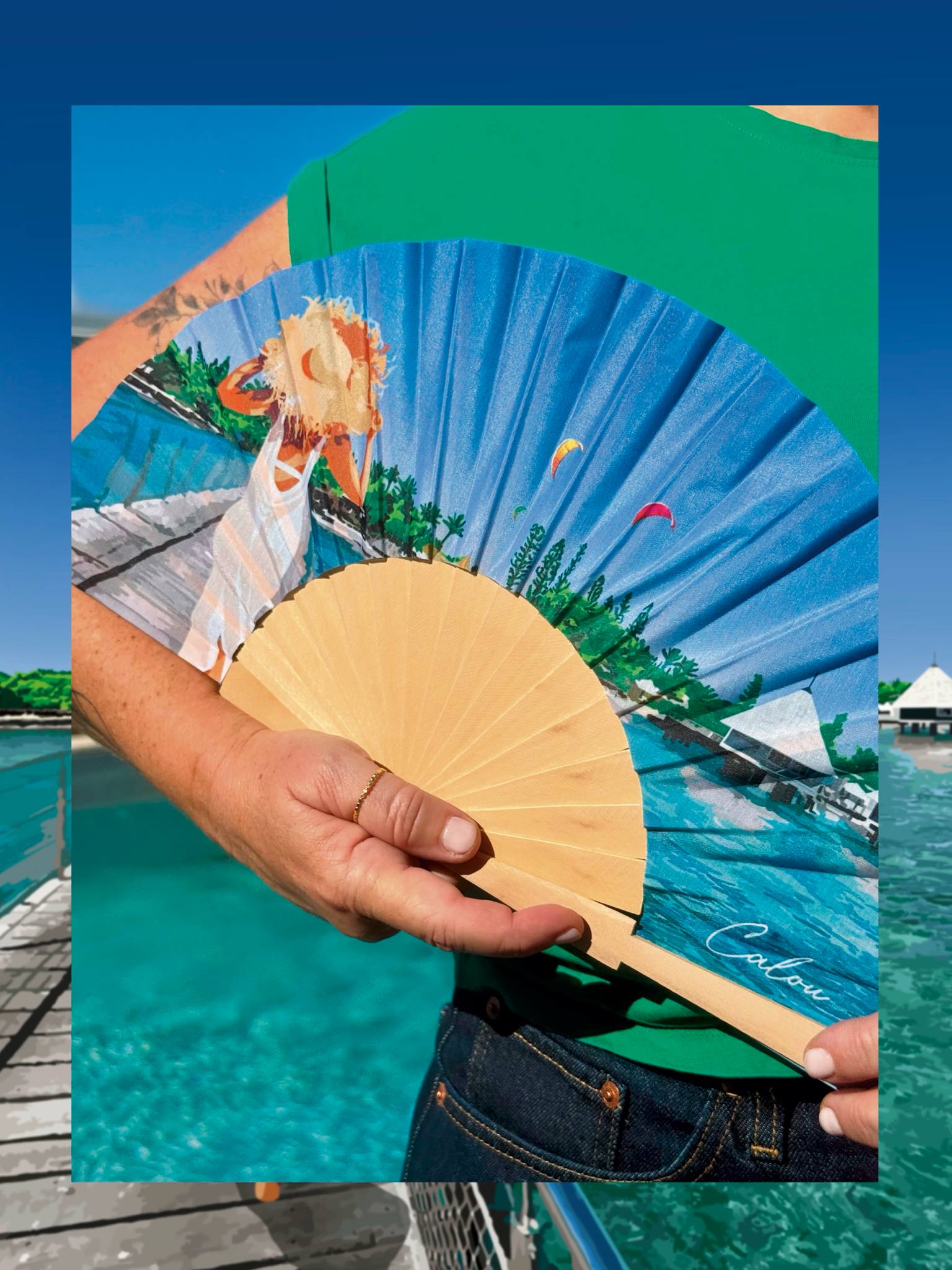 Cet éventail, au design inspiré par la Nouvelle-Calédonie, arbore des couleurs éclatantes et une finition soignée. Léger et élégant, il devient votre complice lors des journées chaudes, apportant une brise douce et un souffle de fraîcheur.